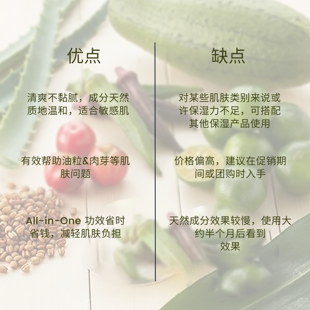 个人是相当推荐【Warabihada All-in-one 保湿水凝霜】这款产品,毕竟市面上除了酸类精华,很少产品能有效改善我皮肤粗糙,油粒和毛孔问题(敏感肌真的不敢随便碰酸类精华)。