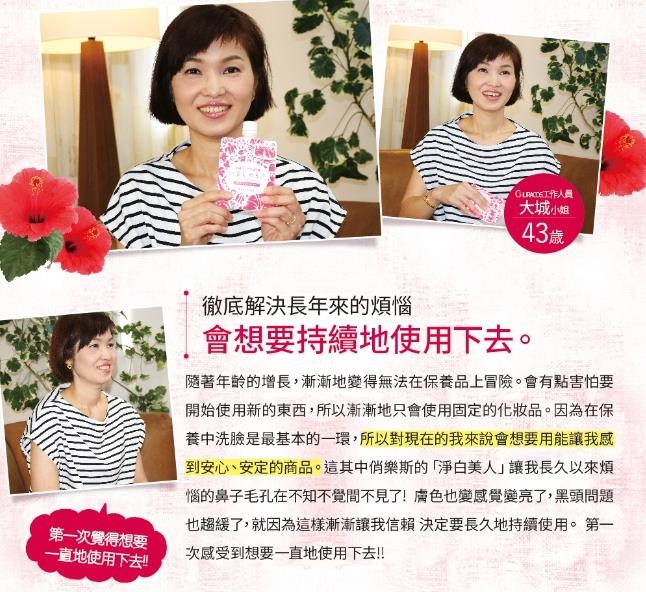 「洗後感」:以前用完洗面乳皮膚還是會有小顆粒、不平滑最糟還會過敏。用了俏樂斯一段時間,膚況越來越透亮,洗後整個毛細孔都在呼吸,鼻子等比較容易堆積油脂的煩躁都不見了,讓心情非常好!用一次就會在浴室陶醉上癮!好可怕,媽媽到底壓力有多大,洗臉也能上癮😂