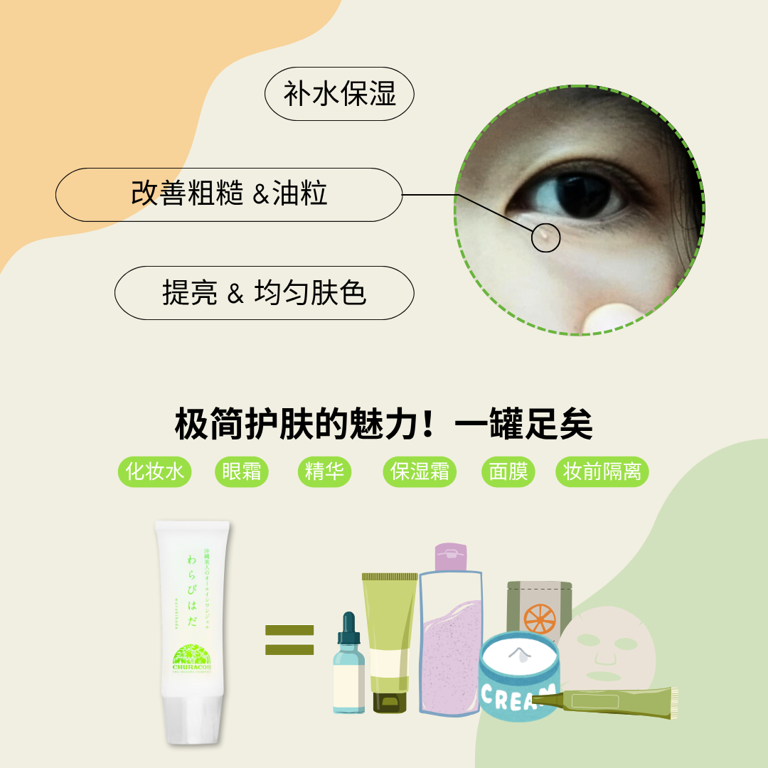 粗糙肌肤救星!来自冲绳的严选成分,薏米萃取深入肌肤底层给予滋润。一罐即可取代化妆水、精华液、乳霜、妆前乳等多效合一水凝霜。 |