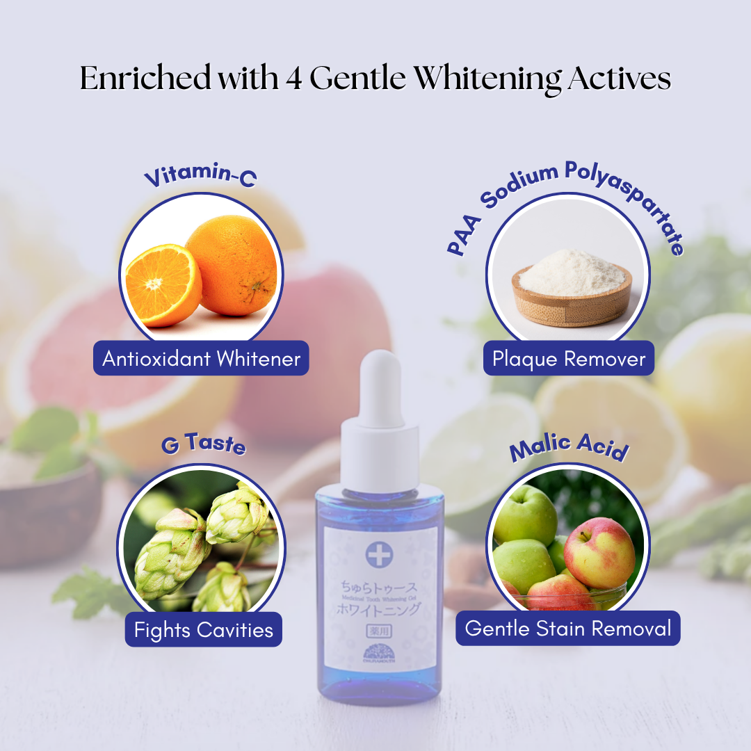 | Direction of use | Apply 1-3 times per day, 3-5 minutes each time. Use Churatooth Whitening Gel to replace normal toothpaste for teeth cleaning. |