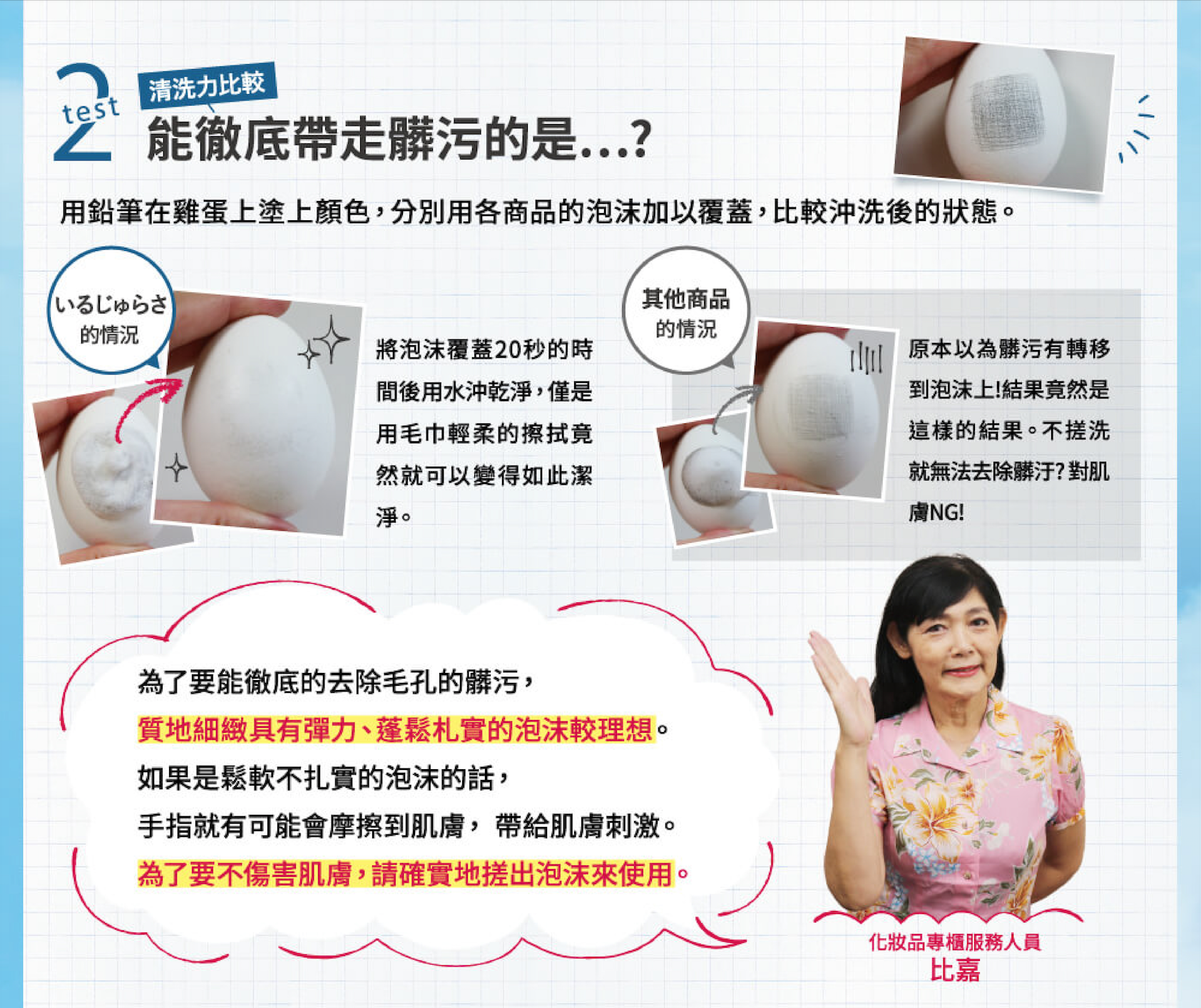 | 商品用途 | 利用不伤害肌肤的碳酸泡沫,加上诺贝尔获奖美容精华及水云褐藻,使脏污、妆容自然浮起脱落不干涩! |