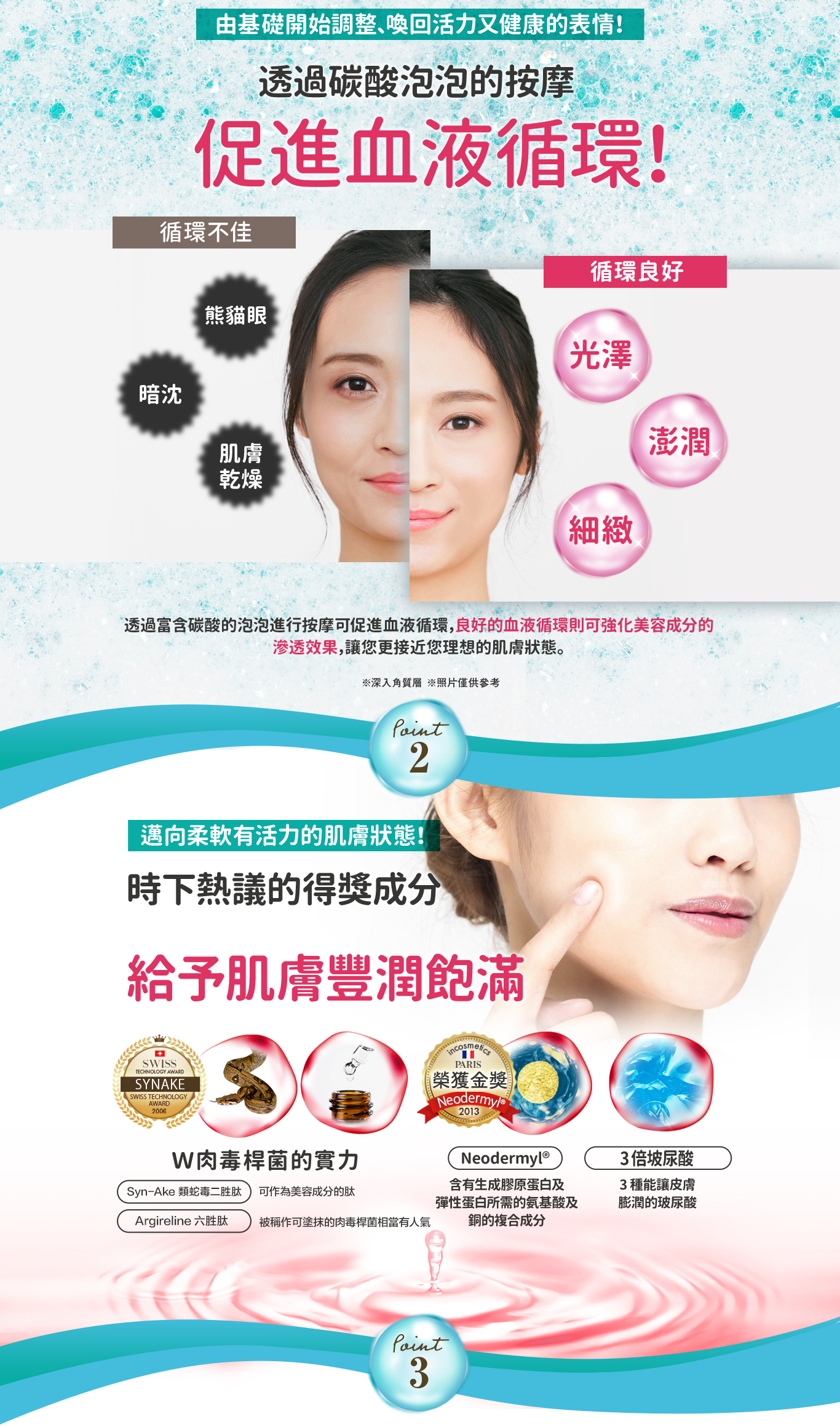 利用不伤害肌肤的碳酸泡沫,加上诺贝尔获奖美容精华及水云褐藻,使脏污、妆容自然浮起脱落不干涩! |