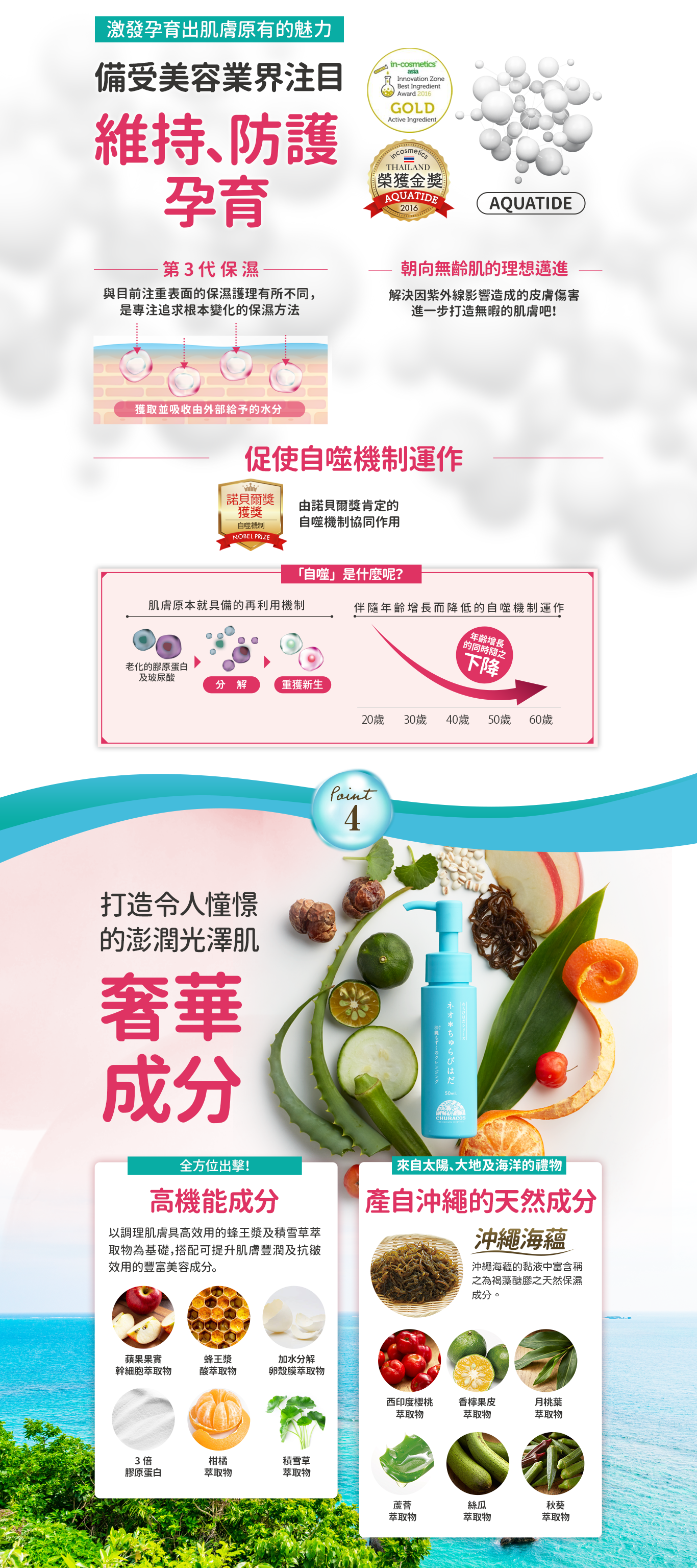 全成分: Water, Glycerin, Dipropylene Glycol, Butylene Glycol, Ethyl Perfluoroisobutyl Ether, Sodium C14-16 Olefin Sulfonate, Ethyl Perfluorobutyl Ether, Dipeptide Diaminobutyroyl Benzylamide Diacetate, Acetyl Hexapeptide-8, Hexacarboxymethyl Dipeptide-12, Methylglucoside Phosphate, Copper Lysinate/Prolinate, Cladosiphon okamuranus extract, Sodium Hyaluronate, Ethylhexyl Palmitate, Silica Dimethyl Silylate, Caprylyl Glycol, Hexylene Glycol, Malus domestica fruit cell culture extract, Lecithin, Hydroxypropyltrimonium Hyaluronate, C12-13 Alkyl Glyceryl Hydrolyzed Hyaluronate, Hydrolyzed Hyaluronic Acid, Collagen, Hydrolyzed Collagen, Soluble Collagen, Hydrolyzed egg shell membrane, Citrus reticulata(Tangerine) peel extract, Centella asiatica extract, Royal jelly extract, Citrus depressa peel extract, Malpighia punicifolia(Acerola) fruit extract, Aloe barbadensis leaf extract, Yokuinin Ekisu(Jpn), Hibiscus esculentus fruit extract, Alpinia speciosa leaf extract, Luffa cylindrica extract, Ascorbyl Glucoside, Enantia chlorantha bark extract, Oleanolic Acid, Hamamelis virginiana (Witch Hazel) distillate, Sapindus trifoliatus fruit extract, Sodium Bicarbonate, Dipotassium Glycyrrhizate, Arbutin, Urea, Acrylates/C10-30 Alkyl Acrylate Crosspolymer, Xanthan Gum, Methyl Gluceth-20, Potassium Hydroxide, Sodium Chloride, Cocamidopropyl Betaine, Potassium Cocoyl Glycinate, Cocamide DEA, Tetrasodium EDTA, Chlorophyllin-iron complex, Fragrance, Sodium Benzoate, Phenoxyethanol, Methylparaben, Propylparaben. | |