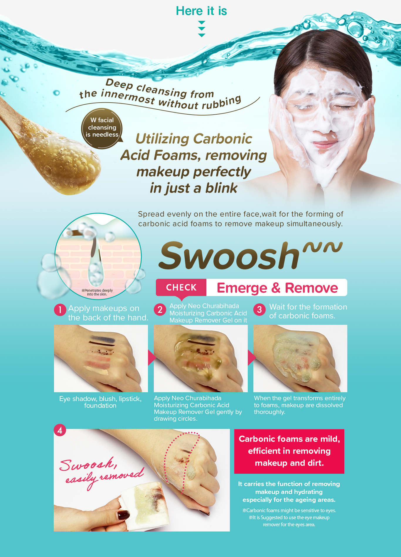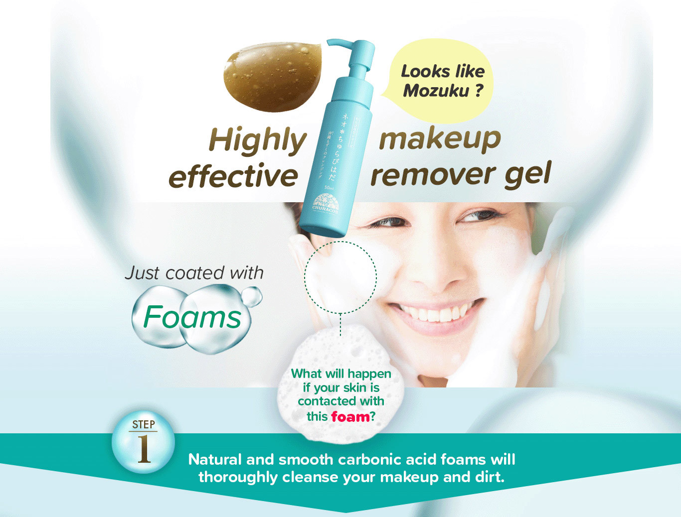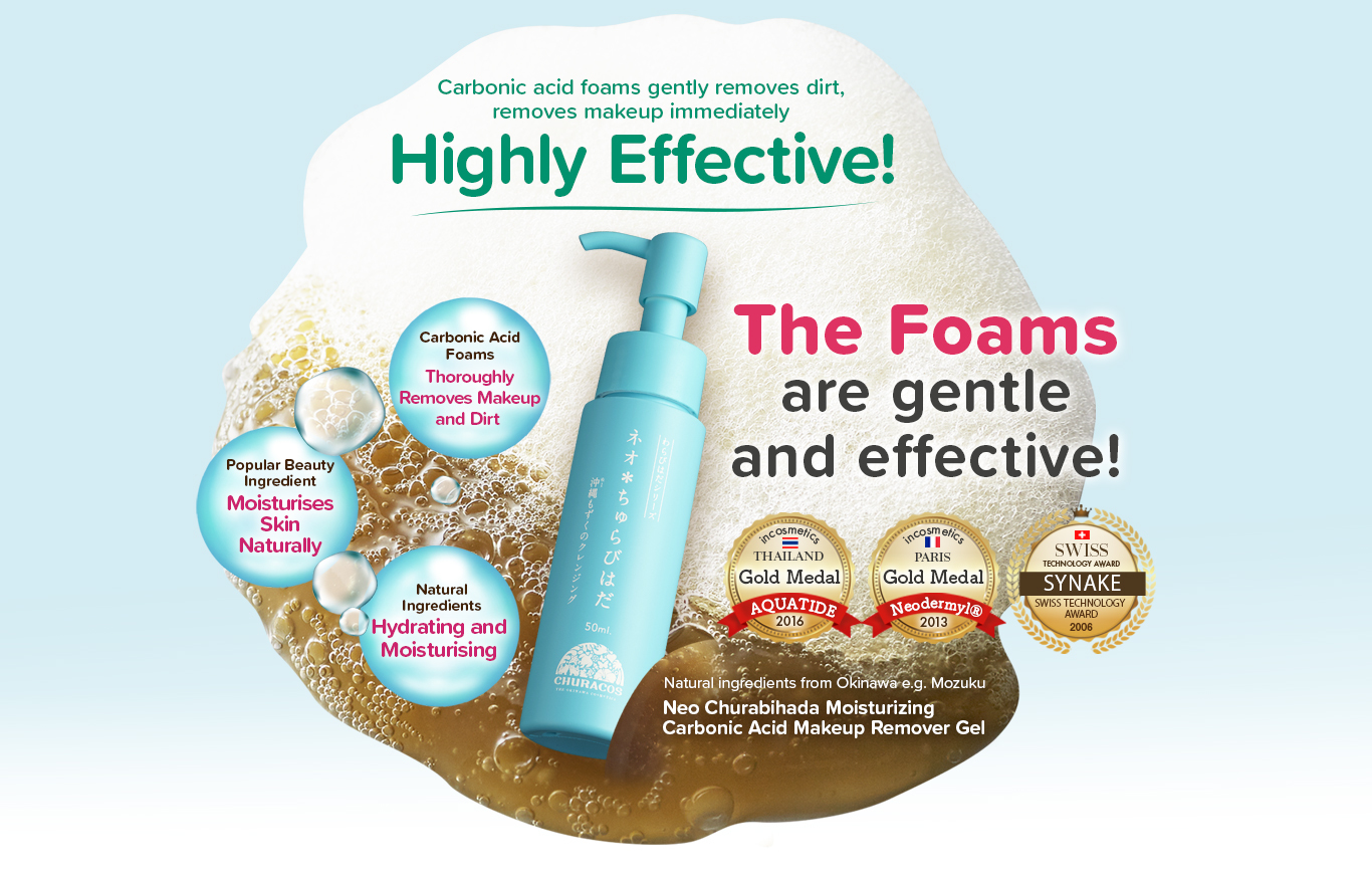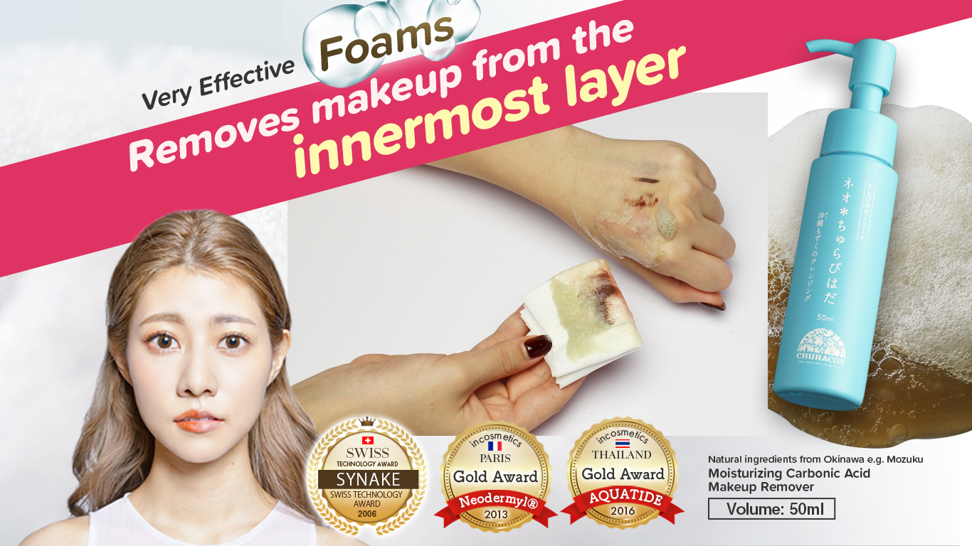 Okinawa No.1 Makeup remover! Massage with Carbonated foam and the powerful W. Botulinum, making the instant makeup removal process as easy as ABC! |
