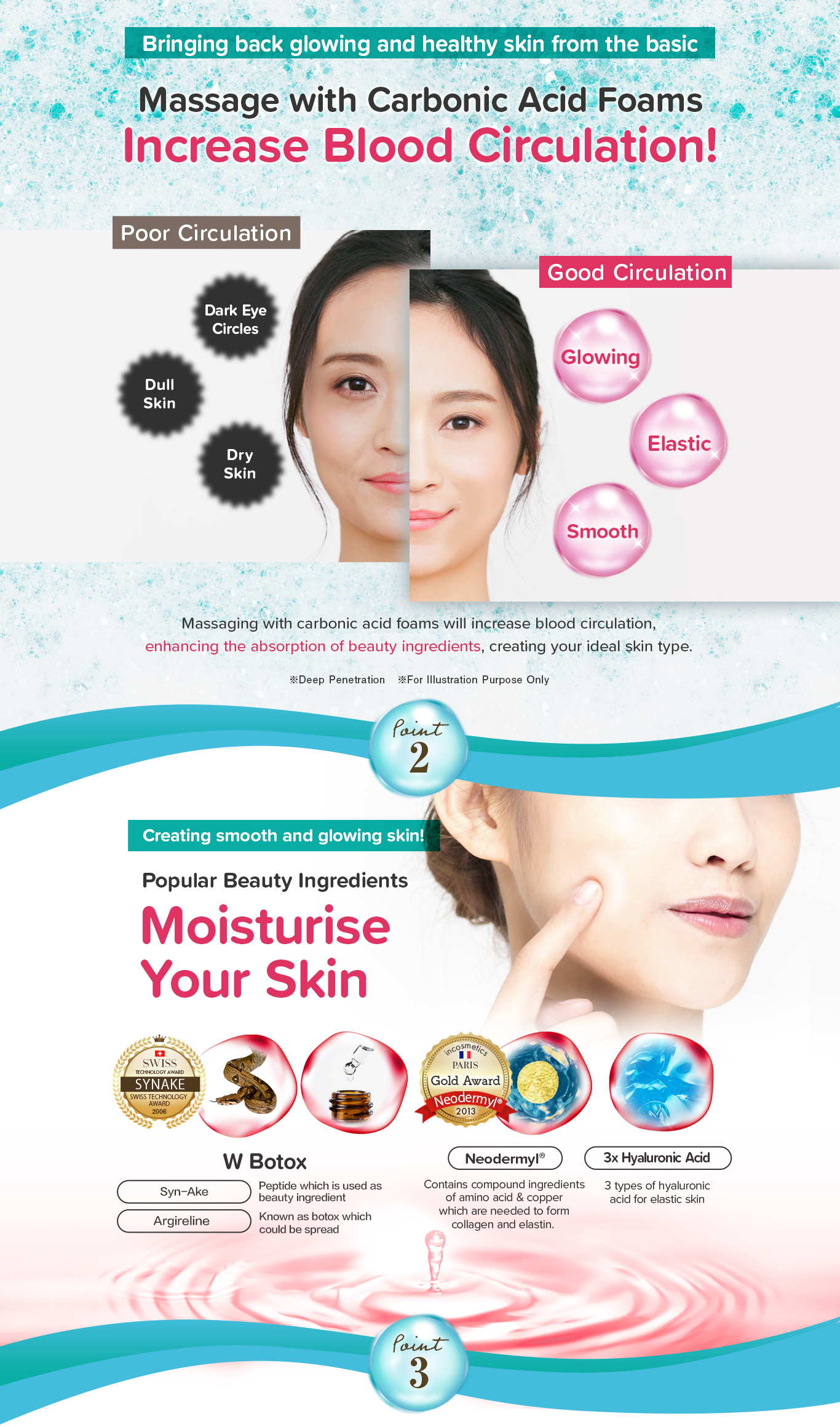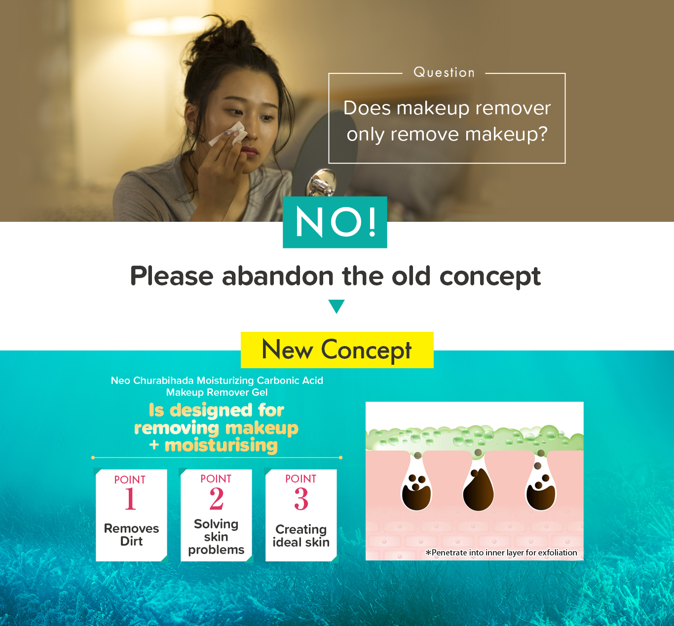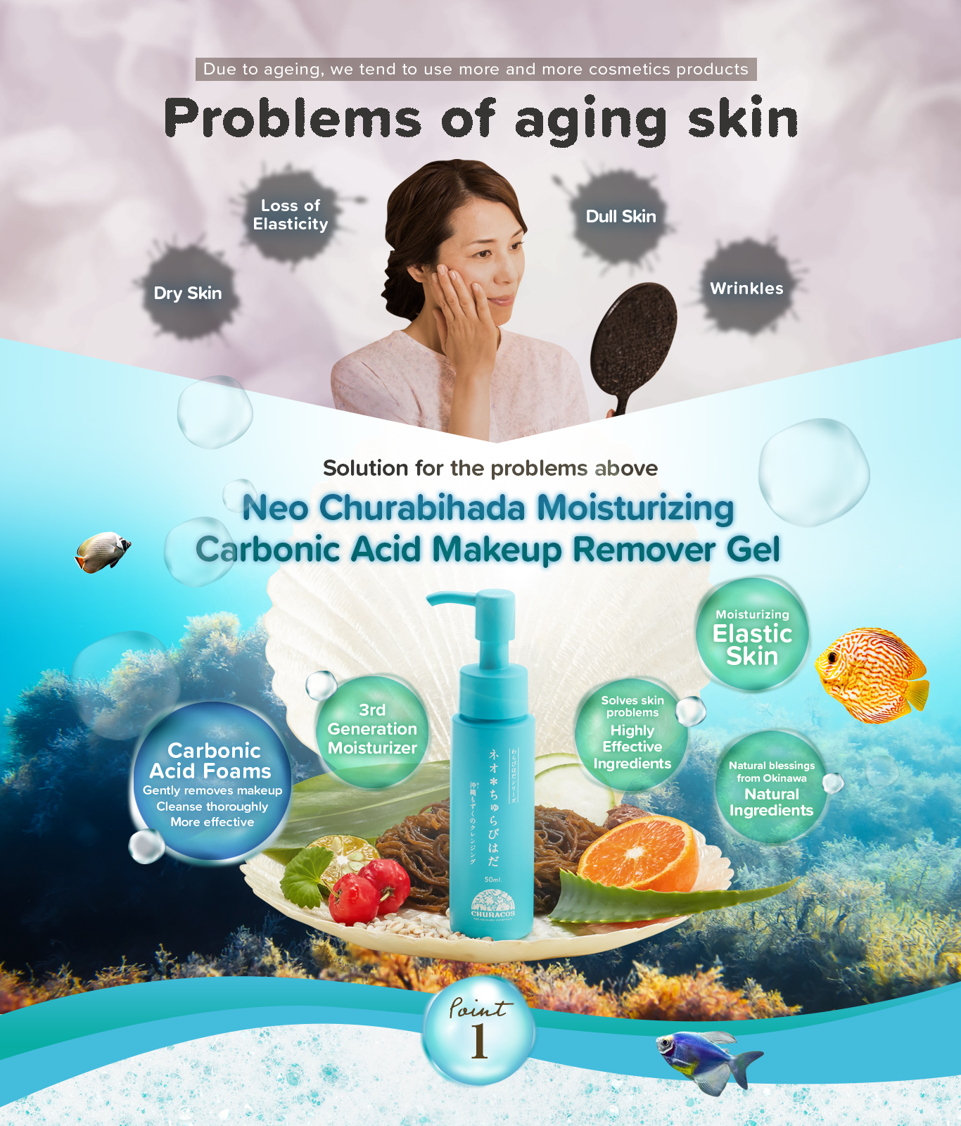Okinawa No.1 Makeup remover! Massage with Carbonated foam and the powerful W. Botulinum, making the instant makeup removal process as easy as ABC! |